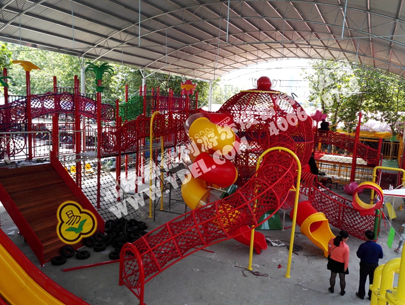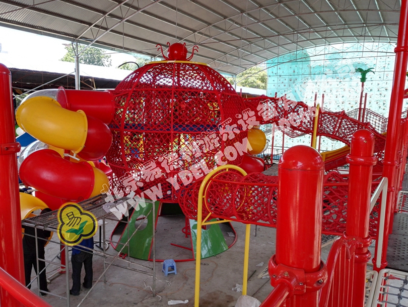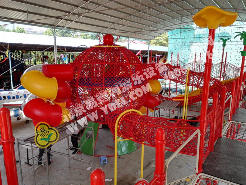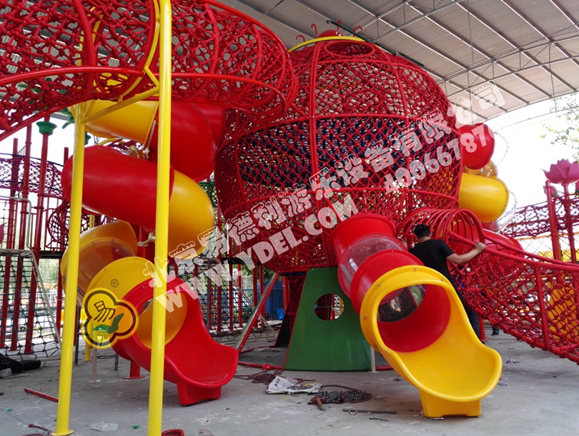 大型的造型攀爬網(wǎng)龍,采用全手工編織網(wǎng)繩打造,以章魚形象為主體,結合攀爬、翻越、滑梯等功能,不僅造型讓人眼前一亮,整體獨具特色,功能兼具冒險和挑戰(zhàn)性,讓孩子得到充分鍛煉。