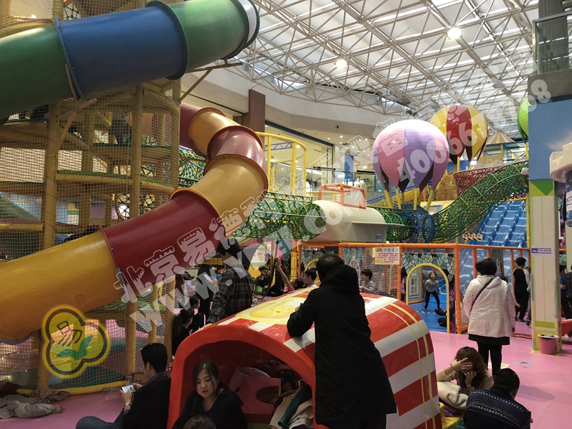 分兩個(gè)區(qū)域:淘氣城堡和闖關(guān)區(qū);這個(gè)項(xiàng)目集成了多種新產(chǎn)品及設(shè)計(jì)理念,我們的設(shè)計(jì)人員與安裝人員是功不可沒(méi)的!下面我?guī)纯催@些新奇好玩的游樂(lè)設(shè)備!